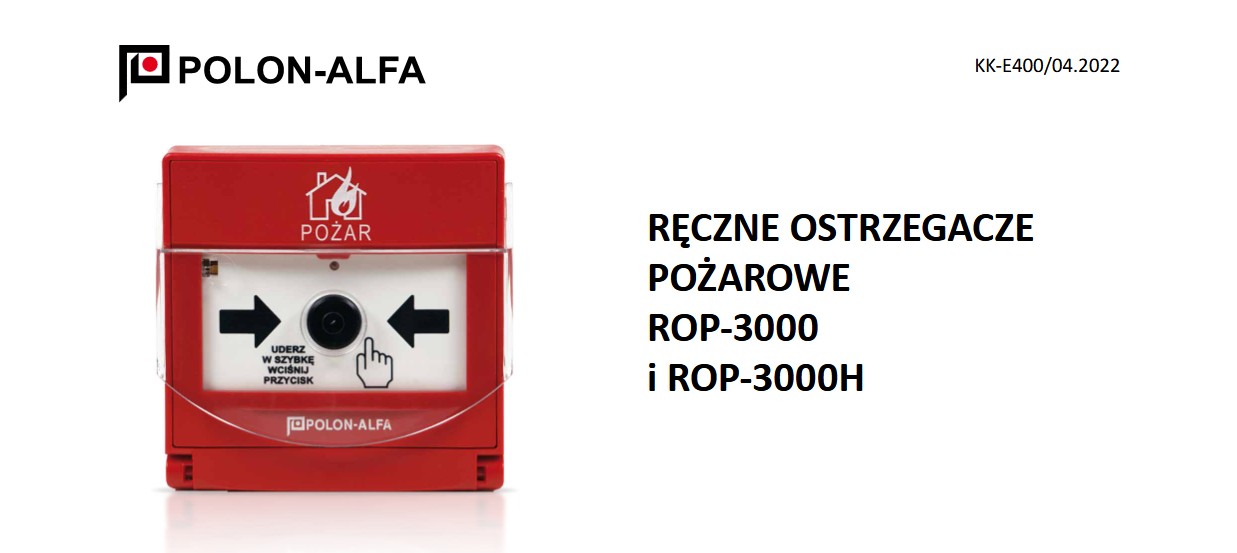 Ręczne ostrzegacze pożarowe ROP-3000 i ROP-3000H są elementami adresowalnymi, przeznaczonymi do przekazywania informacji o pożarze do współpracującej centrali sygnalizacji pożarowej przez osobę, która zauważyła pożar i ręcznie uruchomiła ostrzegacz. Ręczne ostrzegacze mogą pracować na liniach/pętlach dozorowych central sygnalizacji pożarowej POLON 3000. Ostrzegacz ROP-3000 przeznaczony jest do montażu wewnątrz obiektów, natomiast ROP-3000H na zewnątrz obiektów